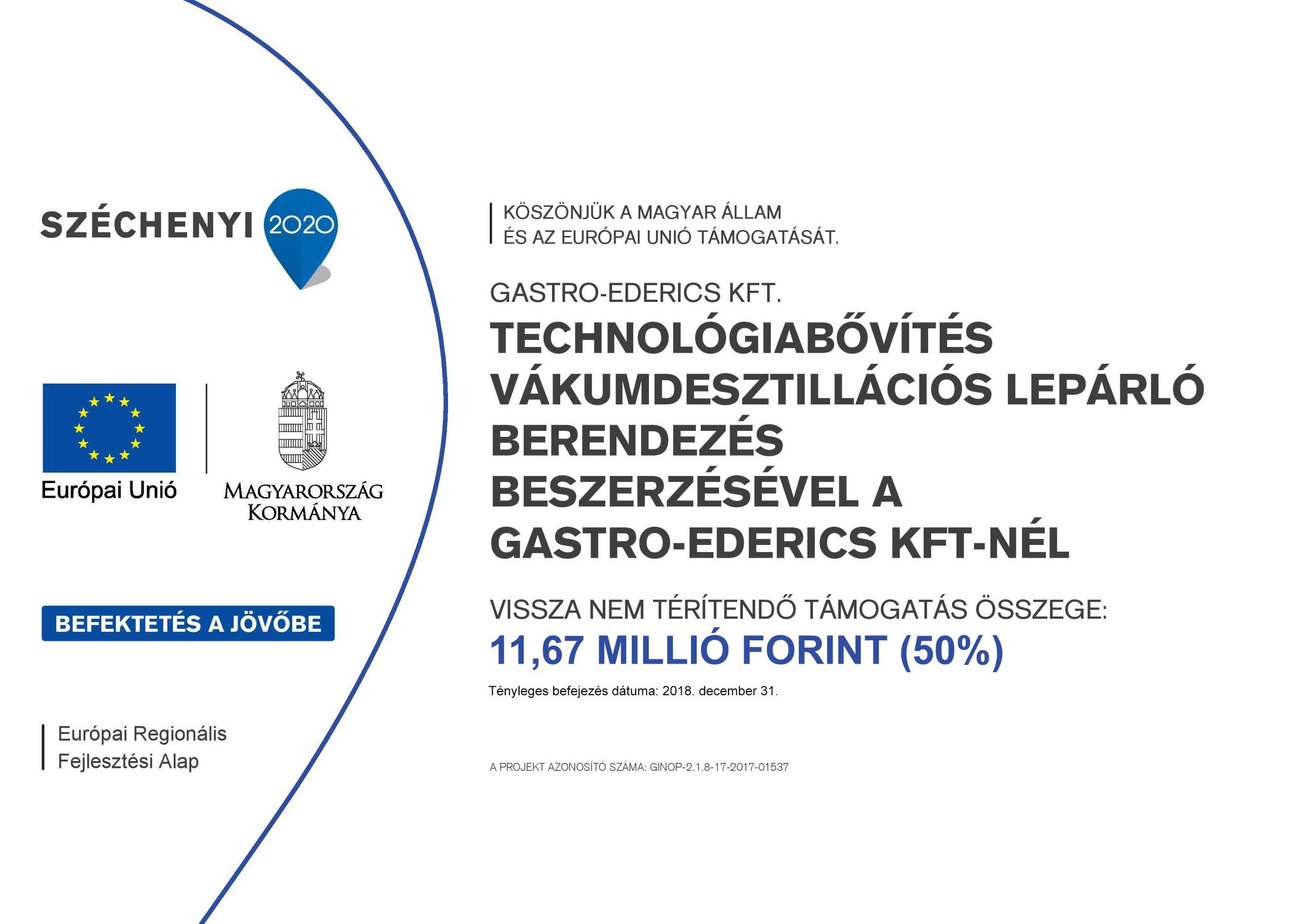 Projekt azonosítószáma: GINOP-2.1.8-17-2017-01537 | Gastro Ederics by GASTRO-EDERICS